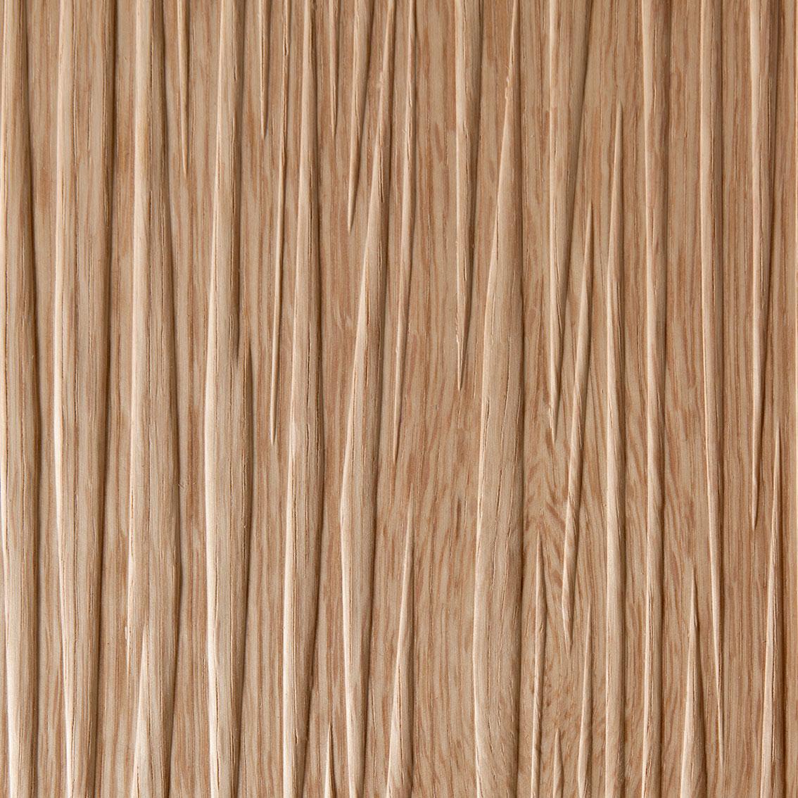Thin decorative panel, made out of 2 embossed layers of real wood veneer, which are glued on a 2.5 mm MDF substrate.