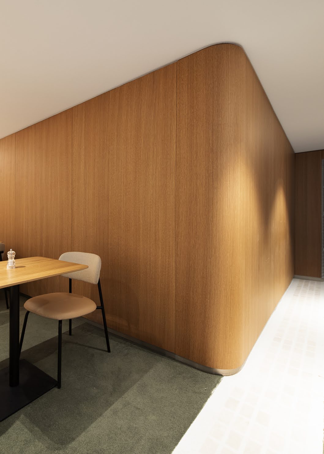 Designed to provide well-being and comfort to its 3,000 occupants, this modern building features a warm and inviting interior architecture, enhanced by Oberflex’s natural oak veneer. Its contemporary workspaces promote soft mobility and draw inspiration from hospital design standards to create a calming and ergonomic environment.