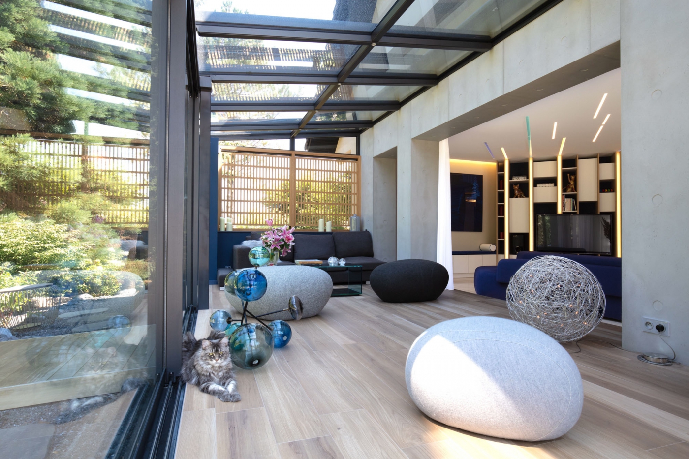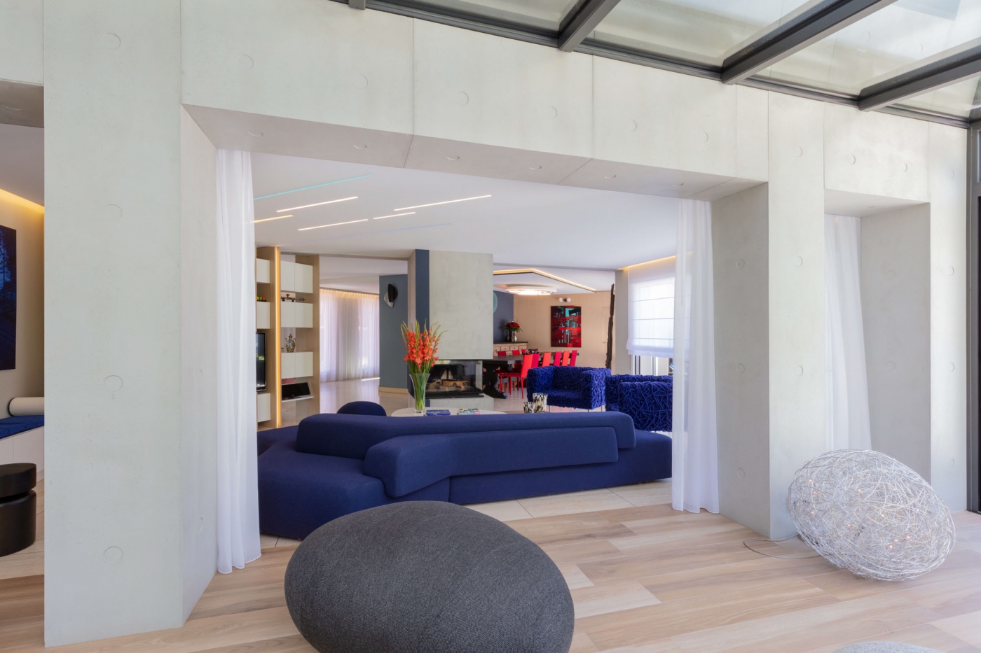 This house project in Louhans (Burgundy, France) offers an innovative interior design with our Panbeton® concrete panels installed on the walls and fireplace. Panbeton® fully adapts to an insulated insert (without an open hearth or uninsulated contact with the insert).