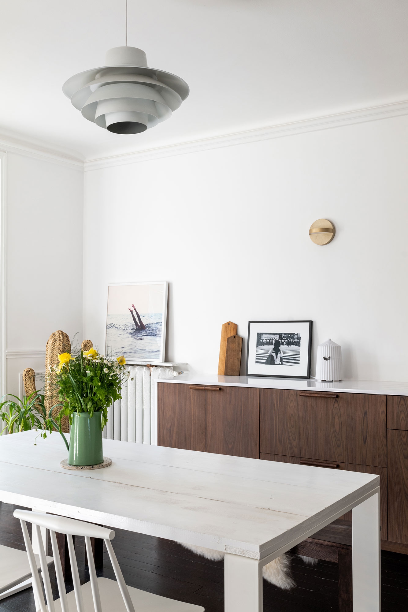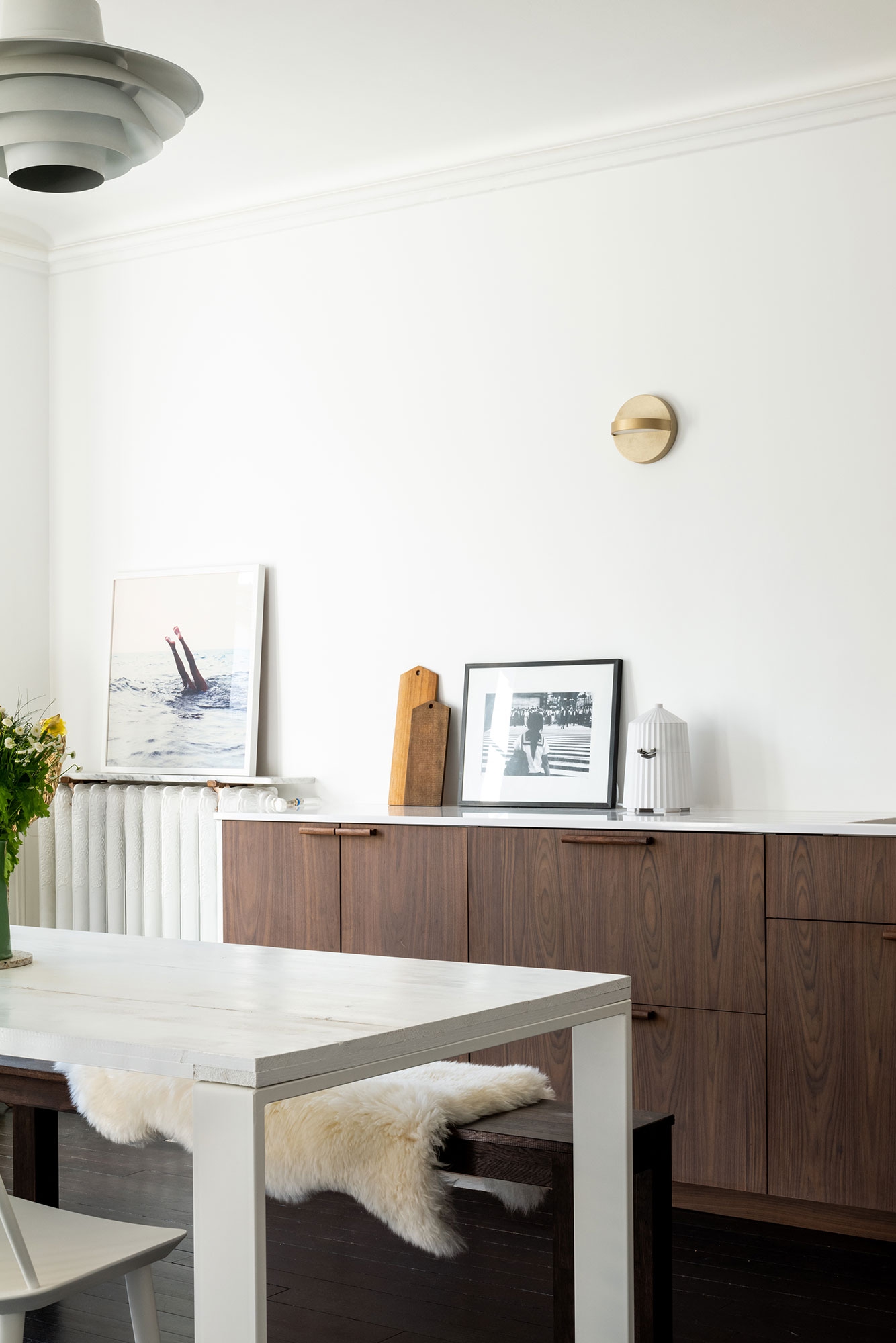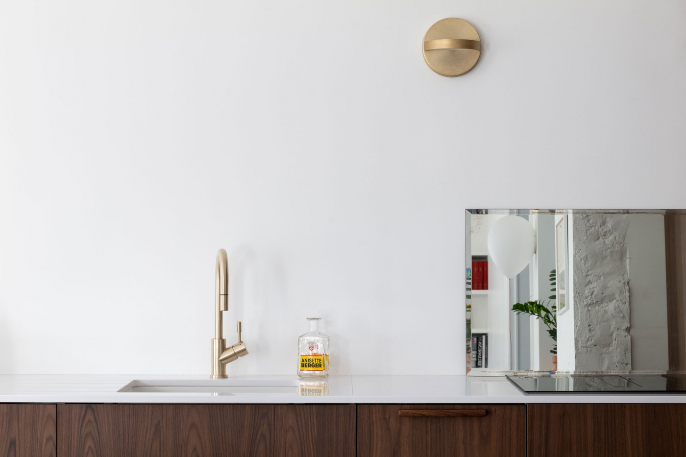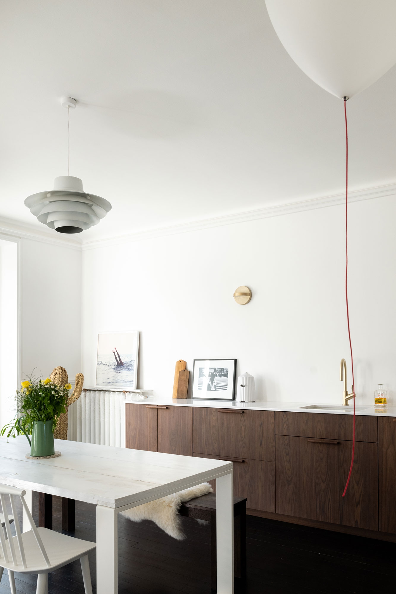 Renovation of a 90 square metre flat in the 18th arrondissment of Paris, with a sublime walnut kitchen.