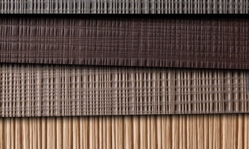 Molded or textured veneers with more or less pronounced reliefs and patterns directly inspired by traditional woodworking.