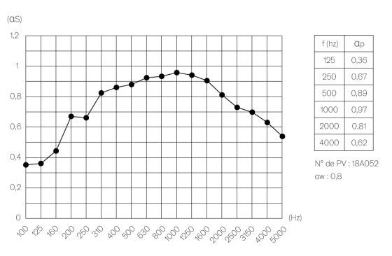 - Average absorption coefficient αw : 0,8 (results based on configuration with the highest perforation rate)