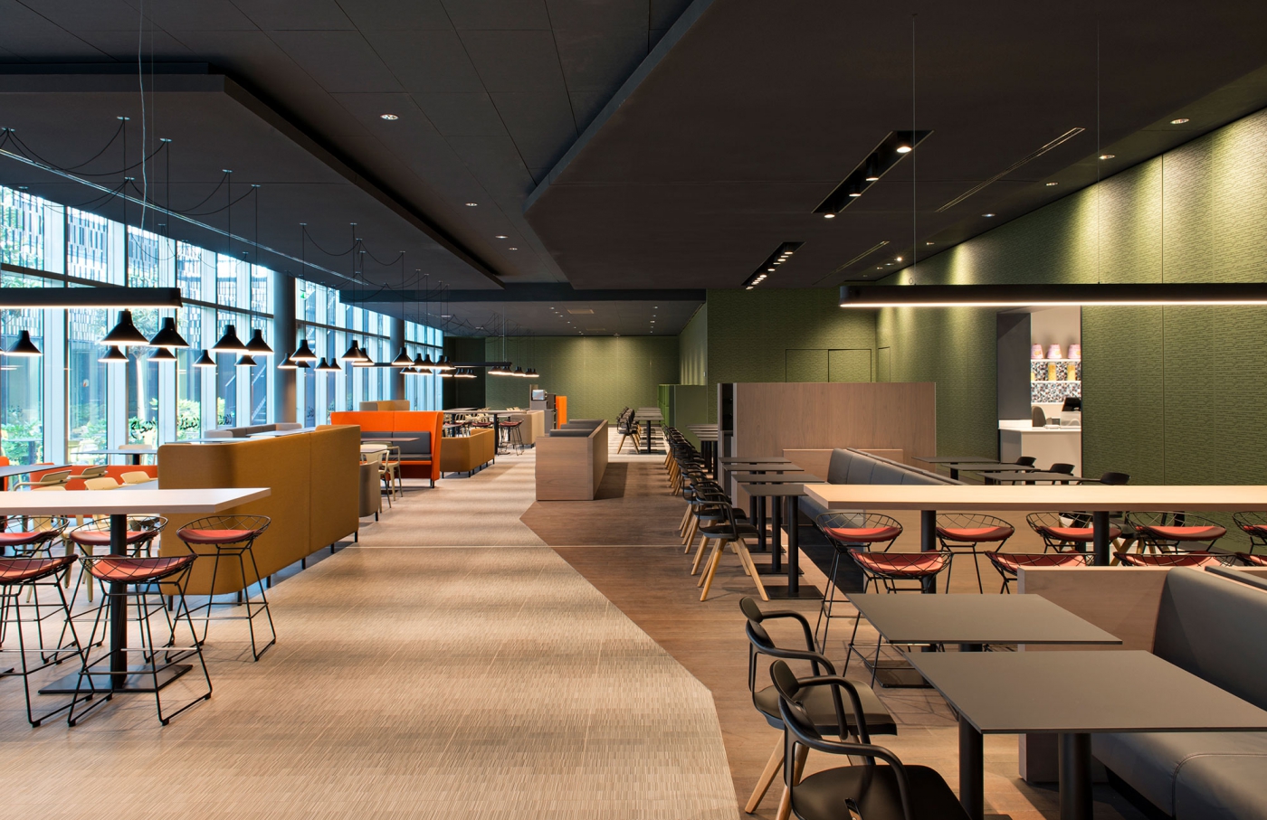 Conception de trois espaces de restauration sur le nouveau campus de la Société Générale à Val-de-Fontenay.