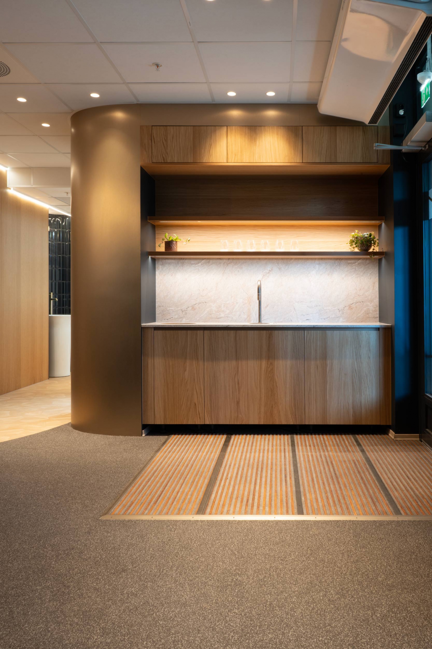 Les tons chauds du bois participent au confort visuel. Dès leur entrée, ils se sentent pris en charge dans un environnement à la fois apaisant et moderne.