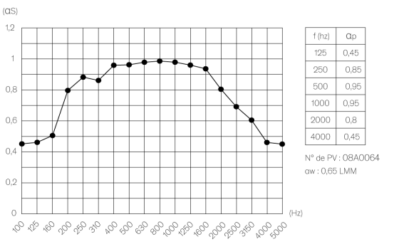 - Coefficient moyen d’absorption αw : 0,65