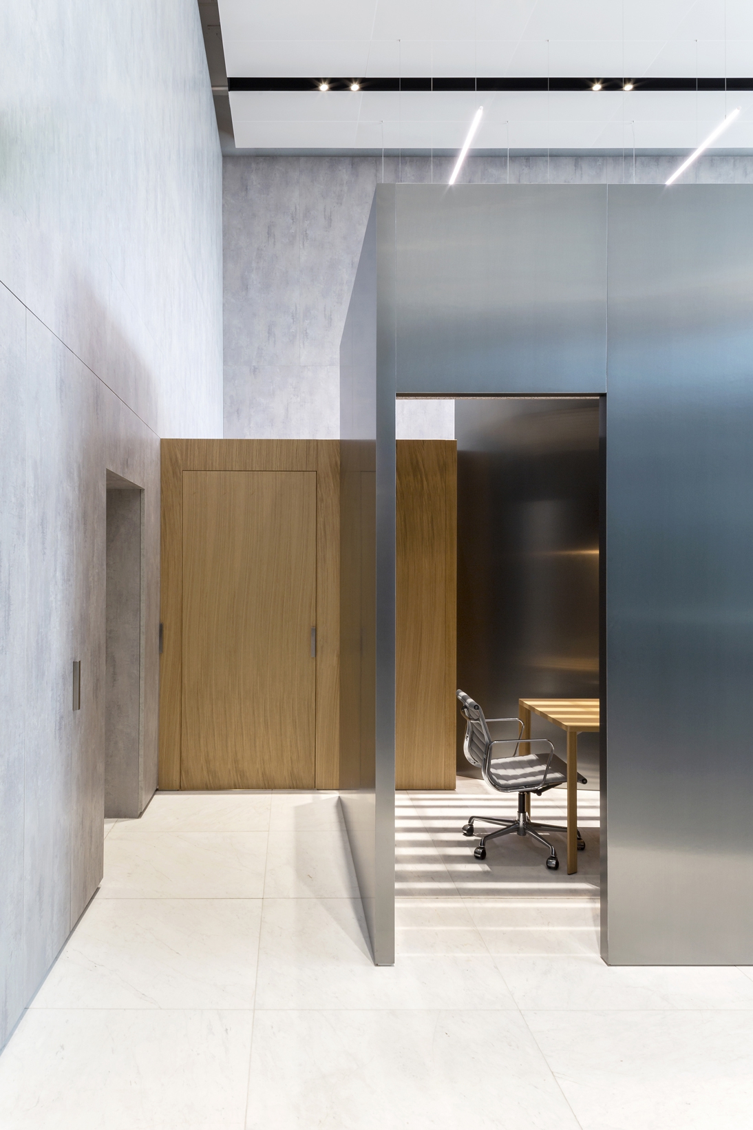 Le projet de l'espace d'accueil était double : créer un environnement prestigieux en introduisant des matériaux de haute qualité et fournir un cadre approprié pour les expositions. Il débouche sur l'espace polyvalent où, selon l'organisation, des réunions, des ateliers ou des séminaires peuvent être organisés.