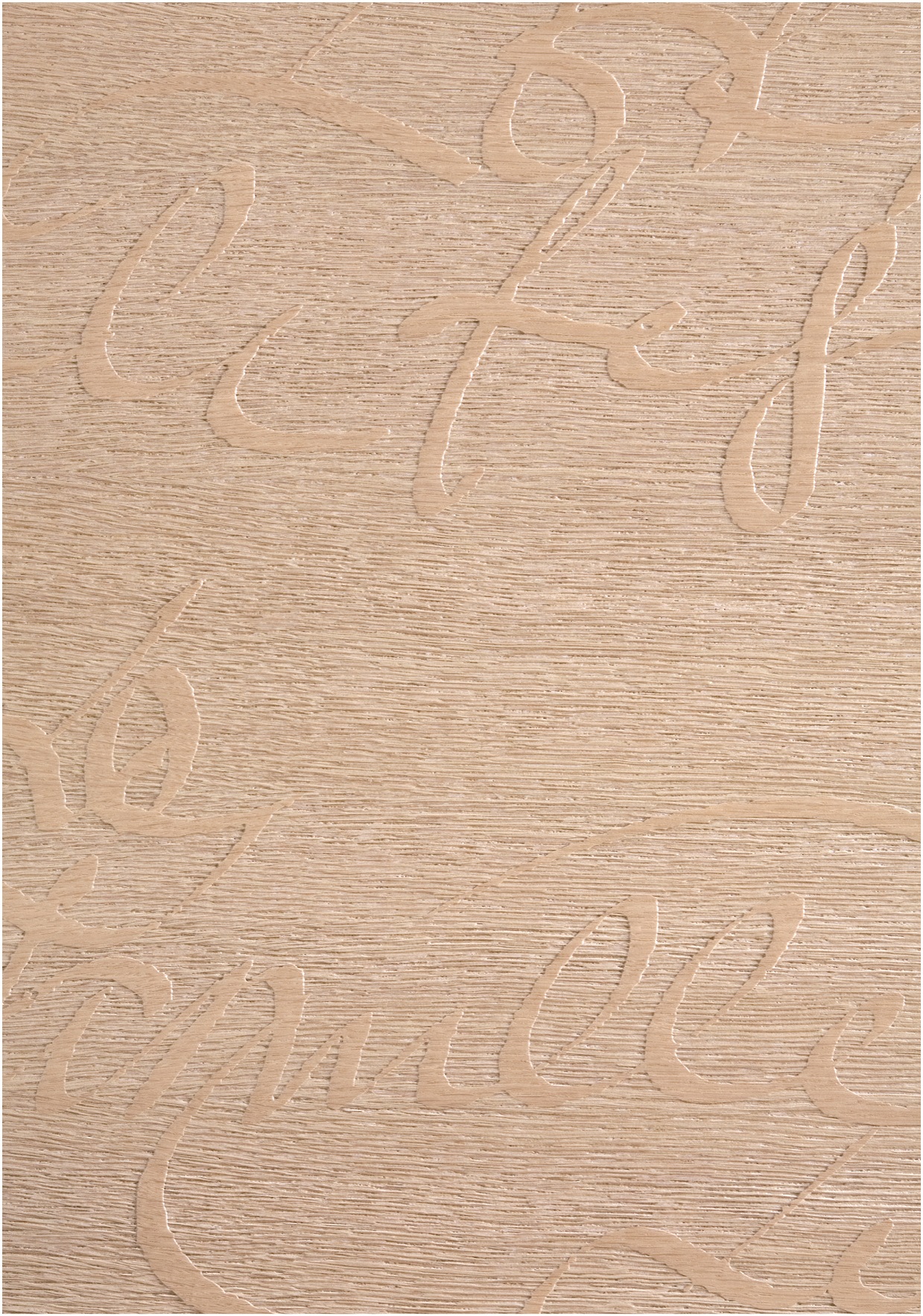 C’est tout naturellement de nos origines de maison de Haute Couture que nous est venue l’idée d’imprimer une Guipure géante sur du Wengé, de sculpter le Noyer d’un motif de broderie à la Cornélie ou encore de découper des Acanthes de bois précieux afin d’en enluminer un grand rideau patchwork. La Passementerie, un entrelacs savant de fils de soie et d’or, nous a inspiré ces panneaux où les bois, tantôt mats, tantôt brillants se mêlent entre eux ou au Corian© sculpté afin de dessiner de savantes arabesques. Les « icônes » de la maison que sont le « Paseo », le « Cabinet de curiosité » ou les « OEillets » ont justement trouvé leur place, imprimées et patinées sur des bois de couleurs ou plus simplement appliquées sur du Noyer ou du Frêne. Enfin, en clin d’oeil au Couturier avec qui nous avons initié cette collection, une très jolie marqueterie « pixellisante » et multicolore évoquant les carreaux de faïence des bodegas de son Sud natal ainsi qu’un dessin « Calligraphie » sablé sur Chêne, comme une signature énigmatique et intemporelle."