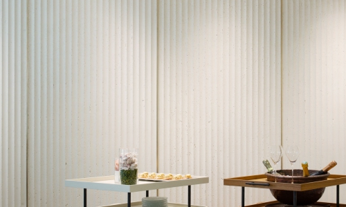 Laid horizontally, the Panbeton® Timber panels designed by Jean-Philippe Nuel are the perfect cladding for the Ornato bar, with an LED strip enhancing the look and adding a finishing touch.