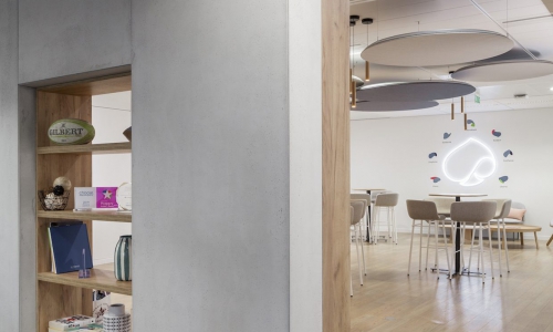 The challenge was to seamlessly integrate new technologies and architectural features while preserving the original building's essence. The goal was to create a pleasant, functional, and stimulating work environment that respects confidentiality and encourages better communication. The architect opted for elegant design solutions, emphasizing the use of wall concrete in their aesthetic choices.