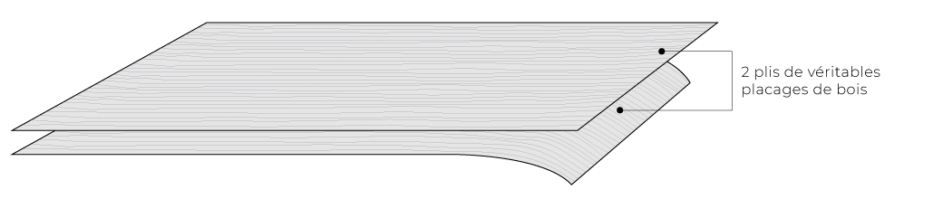 Panneau mince et souple, composé de 2 plis de véritables placages de bois contrecollés. Avantage : tranche 100% bois pour un fini sans tranche noire sur les arêtes (absence de kraft au dos des panneaux). Livré brut sans finition (à vernir, huiler…). 10 essences de bois naturel au choix.