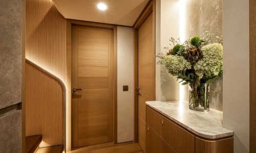 Véritable placage de chêne texturé. Résistance de surface renforcée grâce à la finition Oberflex (conforme aux exigences de la norme EN 438.)