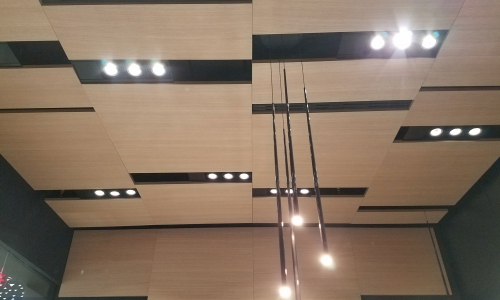 Le plafond du bar a notament été habillé d'un plafond suspendu Tectonique 5.5
