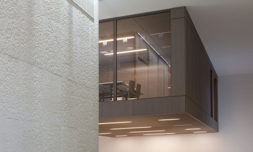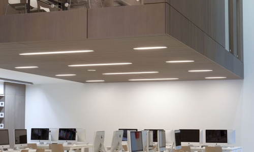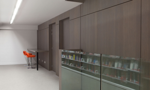 C’est le Chêne clair de fil qui a été choisi pour l’agencement de l’étage consacré à l’accueil des étudiants et aux services pédagogiques. Ce choix a été motivé par l’envie de créer un espace chaleureux et de garantir une durée de vie optimum grâce à la résistance de surface Oberflex.