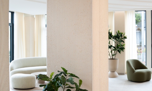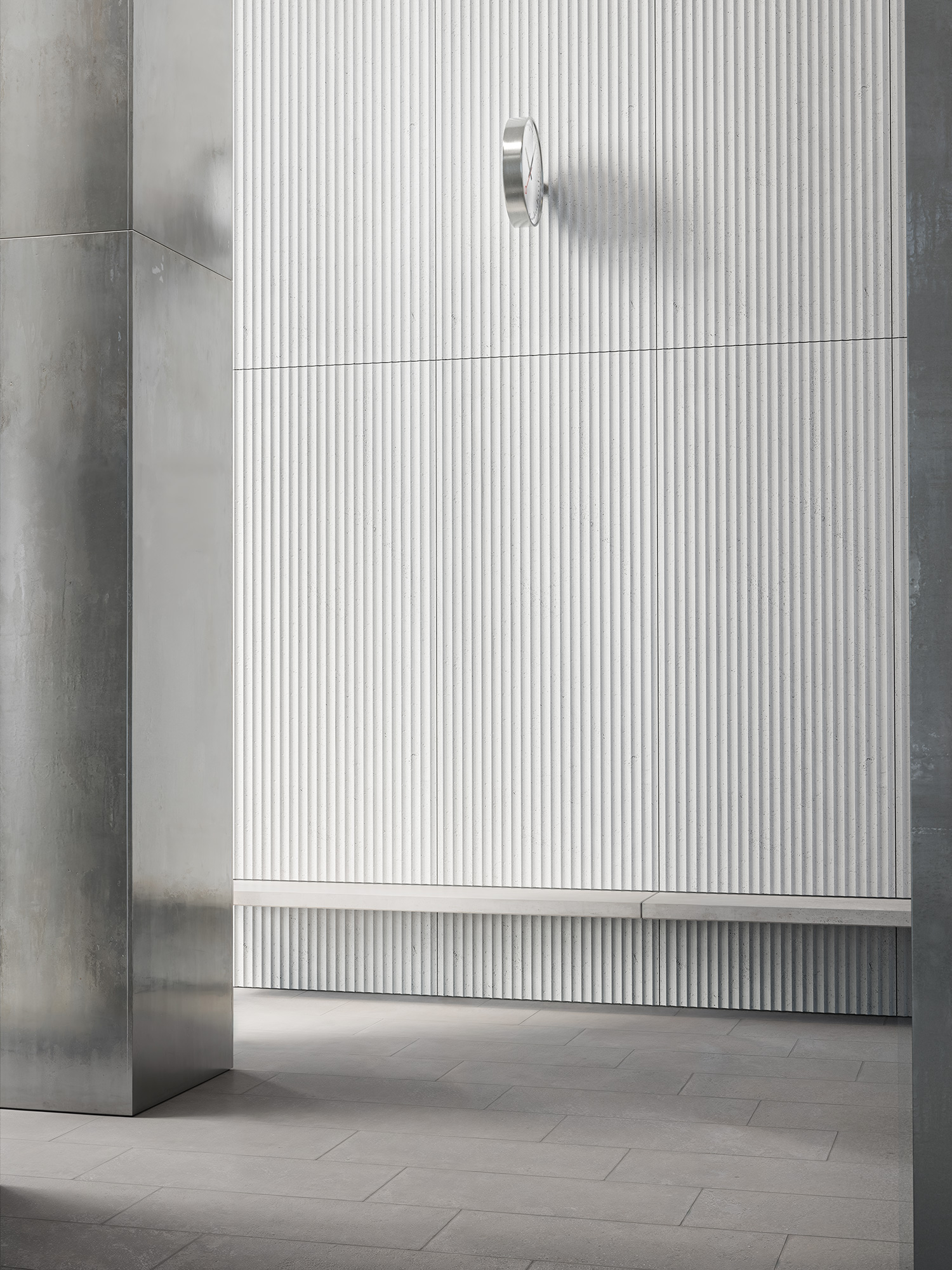 Conjuguer la légèreté du béton fibré à la subtilité des volumes : la collection "Géométrique" déploie des nouvelles perspectives d'aménagement et de mise en scène. Lignes et ondulations, courbes ou juxtapositions géométriques, ici les panneaux en béton font vibrer les surfaces et les sens. Naturellement, la lumière rythme la matière et les reliefs signent des décors dynamiques.