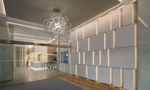 Convertir un ancien bâtiment industriel en espace de travail a nécessité une véritable prise en compte de l'acoustique. Le défi a été relevé grâce à l'utilisation de panneaux Obersound rainurés-perforés.