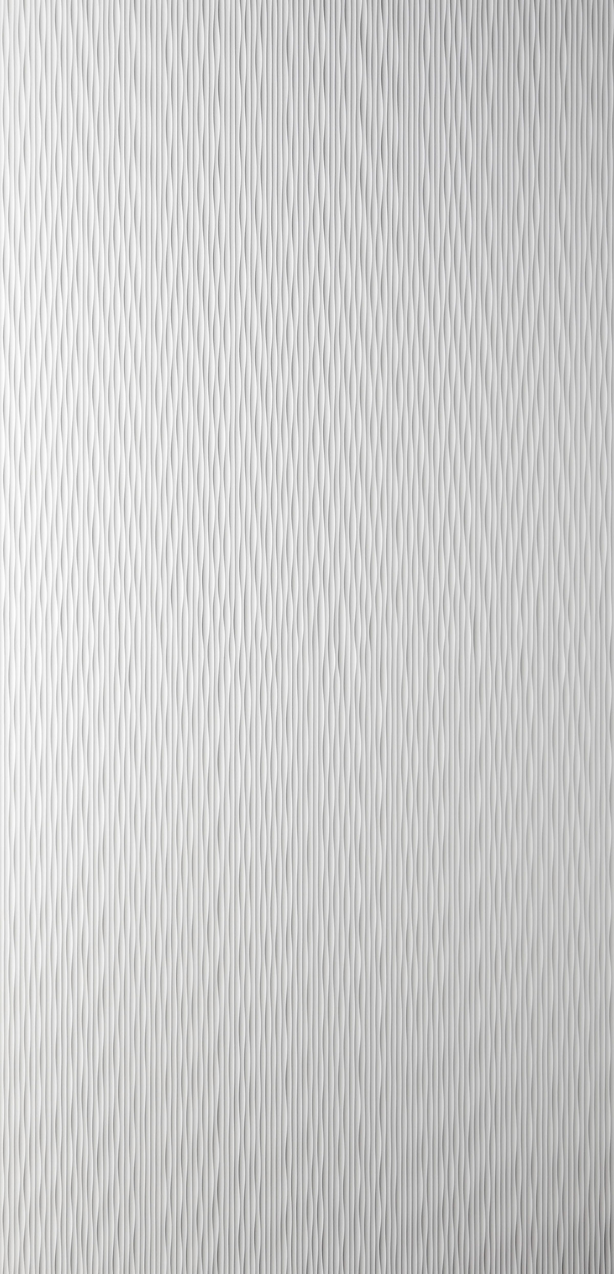 La sculpture est réalisée directement dans la solid surface Staron, un matériau solide et non poreux, pour une précision unique des usinages. Blanc dans la masse, il ne nécessite pas de finition. Un support MDF garantit la stabilité du panneau et facilite sa mise en œuvre.