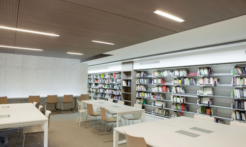 Se eligió el roble claro para la distribución de la primera planta, dedicada a la recepción de los estudiantes y a los servicios de enseñanza. Esta elección estuvo motivada por el deseo de crear un espacio cálido y acogedor y de garantizar una durabilidad óptima gracias a la resistencia de las superficies Oberflex.