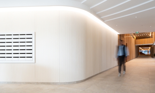 Le panneau Panbeton® Striation sublime l’élégance des lignes architecturale alliées à la force du béton, suggérant ainsi une harmonie et une continuité entre l’ossature extérieure d’un bâtiment et son design intérieur.